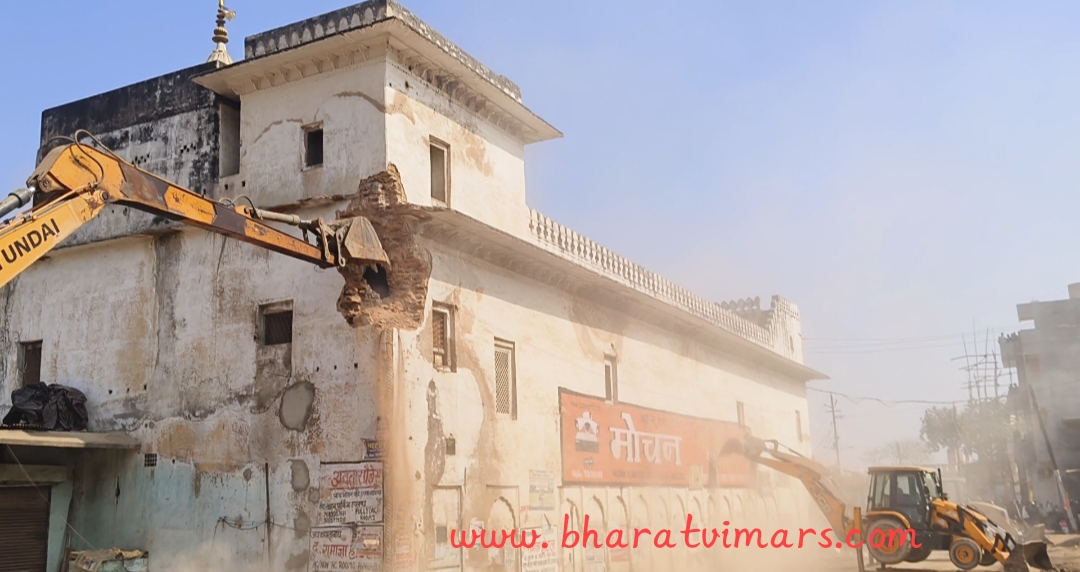 चित्रकूट - चित्रकूट में सड़क चौड़ीकरण निर्माण कार्य के लिए बुधवार को प्राचीन गौरीहार मंदिर की बारादरी को ध्वस्त किए...