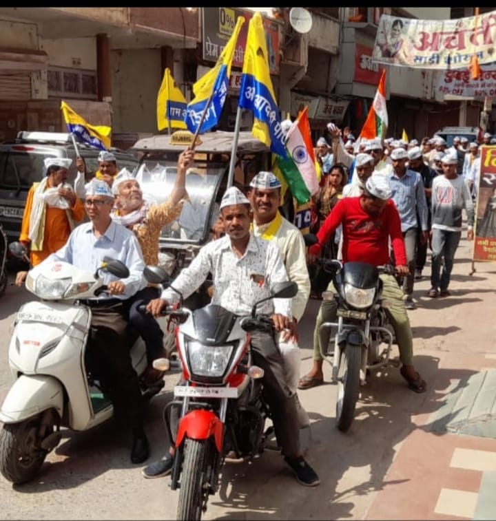आम आदमी पार्टी के जिलाध्यक्ष डा.अमित सिंह के अगुआई में समूचे शहर भर में जश्न-ए- पदयात्रा निकाली गई । सभी क्रांतिकारी साथियों ने एक-दूसरे को गुलाल लगाकर पदयात्रा अंबेडकर चौक से प्रारम्भ की,जो कृष्ण नगर,अस्पताल चौक,हनुमान चौक,बिहारी चौक,जयस्तंभ चौक से स्टेशन रोड होते हुये शहर का हृदय स्थल पन्नीलाल चौक पहुंची। जहाँ सभी कार्यकर्ताओं ने एक-दूसरे को लड़डू खिलाकर मुंह मीठा कर पदयात्रा समाप्त की।