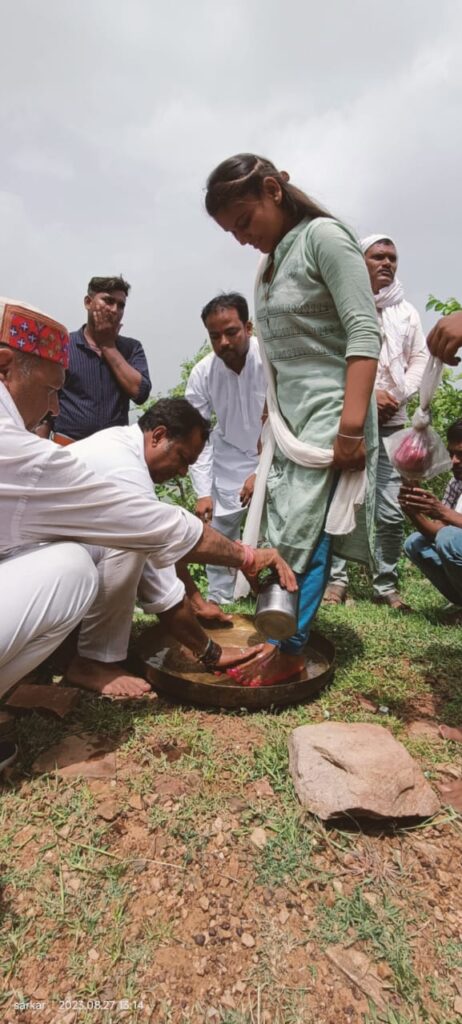 चित्रकूट – श्रावण मास के शुरुआत से ही पूरे चित्रकूट विधानसभा में विधायक नीलांशु द्वारा निकाली जा रही जलाभिषेक यात्रा के चौथा चरण की शुरुआत सांडा स्थित मां शारदा देवी मंदिर में 101 कन्याओं के पैर धुलकर कन्या भोजन के पश्चात यात्रा की शुरुआत की गई जो झरी, पड़री, लालपुर, ब्रम्हीपुर होते हुए नकैला पहुंची जहां भोजन व रात्रि विश्राम किया जिसका जगह-जगह महिलाओं व कन्याओं ने अपने- अपने दरवाजे व गांव में कलश लेकर फूल से स्वागत किया। दूसरे दिन की यात्रा की शुरूआत नकैला से चलकर बीरगढ़ के बियावान जंगल में बिराजी मां भवानी की विधिवत पूजा अर्चना कर कन्या भोजन व साथ मे चल रहे काफिले ने दोपहर का प्रसाद ग्रहण कर घने जंगलों में बसे लोगो से मुलाकात कर रात्रि का विश्राम कंदर गांव में ग्रामीणों के साथ हुआ