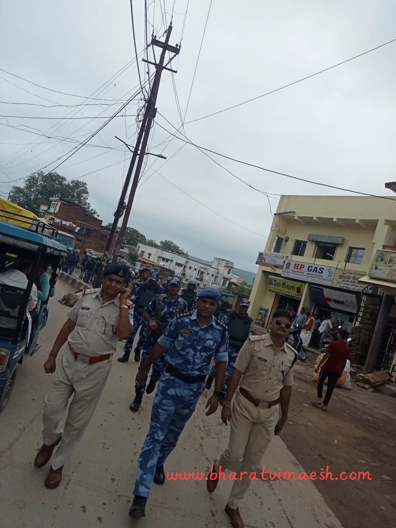 चित्रकूट – आगामी त्योहारों के अवसर पर शांति और सौहार्द बनाए रखने को दृष्टिगत रखते हुए थाना चित्रकूट पुलिस और रैपिड एक्शन फोर्स (RAF) के जवानों द्वारा संयुक्त रूप से एसडीओपी चित्रकूट रोहित राठौर,RAF कमांडेंट और थाना प्रभारी डी आर शर्मा के नेतृत्व में चित्रकूट के प्रमुख मार्गों पर किया गया फ्लैग मार्च।