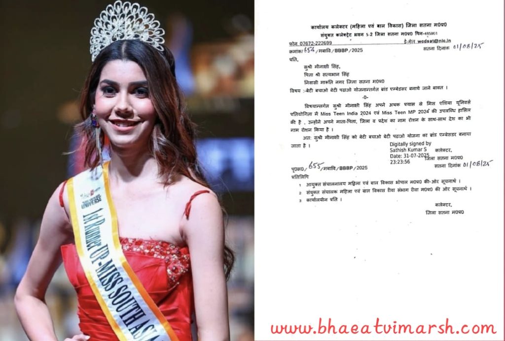 सतना – मध्यप्रदेश के सतना जिले की होनहार बेटी मीनाक्षी सिंह, निवासी मारुति नगर, ने अंतरराष्ट्रीय मंच पर देश और प्रदेश का नाम रोशन किया है। उन्होंने मिस एशिया यूनिवर्स प्रतियोगिता 2024 में भाग लेकर Miss Teen India 2024 और Miss Teen MP 2024 का खिताब अपने नाम किया है।उनकी इस असाधारण उपलब्धि को देखते हुए सतना जिला प्रशासन ने उन्हें “बेटी बचाओ बेटी पढ़ाओ” योजना का ब्रांड एम्बेसडर नियुक्त किया है।