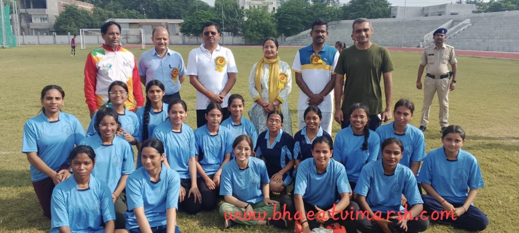 रस्सा कसी प्रतियोगिता में विजयी MGCGV की महिला टीम सम्मानित