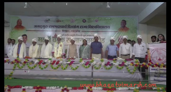चित्रकूट उप्र – जगतगुरु रामभद्राचार्य दिव्यांग राज्य विश्वविद्यालय सीतापुर चित्रकूट उत्तर प्रदेश के सौजन्य से राष्ट्रीय आयुर्वेद दिवस 23 सितंबर 2025 बुधवार को अष्टावक्र सभागार में आयोजित हुआ जिसके मुख्य अतिथि चिकित्सा विभूति डॉ बी के जैन जी रहे अध्यक्षीय उद्बोधन में माननीय कुलपति जी आम स्वास्थ्य का निर्देशन करते हुए प्राकृतिक जीवन शैली पर विश्वास व्यक्त किया वहीं बीके जैन जी ने प्राचीन एवं आधुनिक चिकित्सा का सीमांकन करते हुए गुण दोष का उल्लेख किया कार्यक्रम में सम्मान, श्रीफल एवं अंग वस्त्रम से स्वागत करते हुए मा0 कुलपति (जगतगुरु रामभद्राचार्य दिव्यांग राज्य विश्वविद्यालय )जी ने अतिथि धर्म के अनुसार आभार व्यक्त करते हुए वयक्तिक अनुभव का सहकार भाव व्यक्त किया वैद्य मदन गोपाल बाजपेई जी, वैद्य शिवकांत अग्निहोत्री जी,वैद्य राम प्रकाश पांडेय जी ने अपने आयुर्वेद सेवा अनुभव साझा किए आभार विश्वविद्यालय के चिकित्सा अधिकारी डॉ सचीन्द्र कुमार उपाध्याय ने किया साथ ही कार्यक्रम में कुल सचिव मधुरेन्द्र कुमार पर्वत जी , अन्यान्य संस्थाओं के आयुर्वेद विशारद गण, विश्वविद्यालय के शिक्षक गण छात्र-छात्राएं, कर्मचारी गणों की उपस्थिति उत्साहवर्धक रही। डॉ गोपाल मिश्रा डॉ संध्या पांडे श्रीमती अल्पना सेंगर ने मंचीय सहयोग प्रदान किया