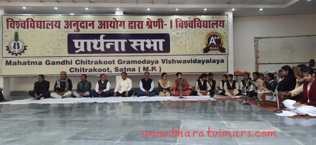 चित्रकूट – आज प्रार्थना सभा में महात्मा गांधी चित्रकूट ग्रामोदय विश्वविद्यालय के कुलगुरु प्रो भरत मिश्रा का सम्मान विद्यार्थियों और स्टाफ ने किया। आज का दिन एक विशेष संयोग से जुड़ा, जब कुलगुरु के रूप में अपने अंतिम कार्य दिवस पर प्रो भरत मिश्रा ने मूल्य एवं सामाजिक उत्तरदायित्व पाठ्यक्रम के अंतर्गत अंगीकार मासिक प्रार्थना सभा की अध्यक्षता की।