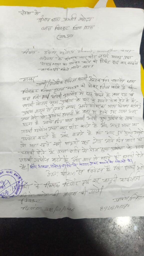 चित्रकूट – थाना चित्रकूट क्षेत्र अंतर्गत वार्ड नंबर 07 नयागांव में आज सुबह करीब 10:30 बजे पुरानी रंजिश को लेकर जमकर मारपीट का मामला सामने आया। पीड़िता सविता सोनकर उम्र 35 वर्ष पति अशोक सोनकर के अनुसार नेफा उर्फ आकाश सोनकर, गजेन्द्र सोनकर और जितेन्द्र सोनकर उनके घर आए और मां-बहन की अश्लील गालियां देते हुए हमला कर दिया।