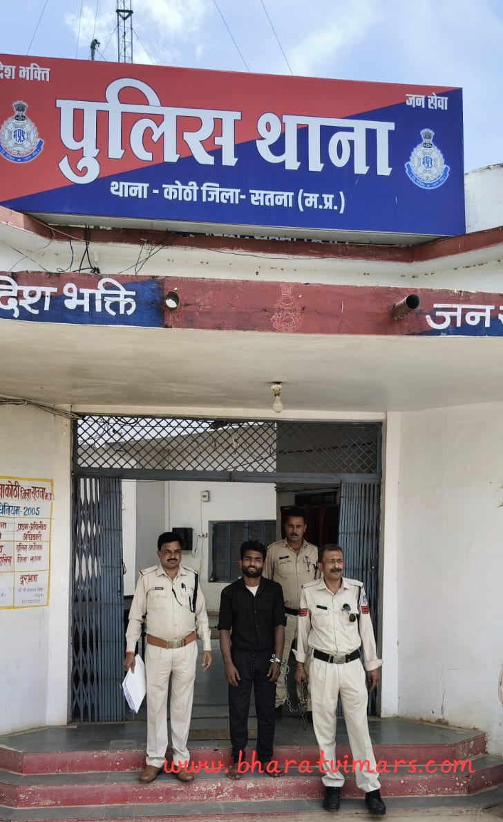 दिनांक 22 मार्च2026 को शाम को फरियादिया को आरोपी द्वारा घुसकर नाबालिक लडकी से छेडछाड कर मारपीट करना व जान मारने की धमकी देने पर आरोपी के विरूद्ध अपराध 82/2026 धारा 74,74(1) (I),78,296(B),115(2),351(3),333 BNS, 7/8 पास्सो एक्ट पंजीबद्ध कर आरोपी विक्रम सिंह पिता दिनेश सिंह उम्र 24 वर्ष निवासी ग्राम इटमा थाना कोठी जिला सतना म.प्र. को गिरफ्तार किया गया । गिरफ्तार शुदा आरोपी विक्रम सिंह के विरूद्ध वैधानिक कार्यवाही करते हेतु माननीय न्यायालय पेश किया गया ।