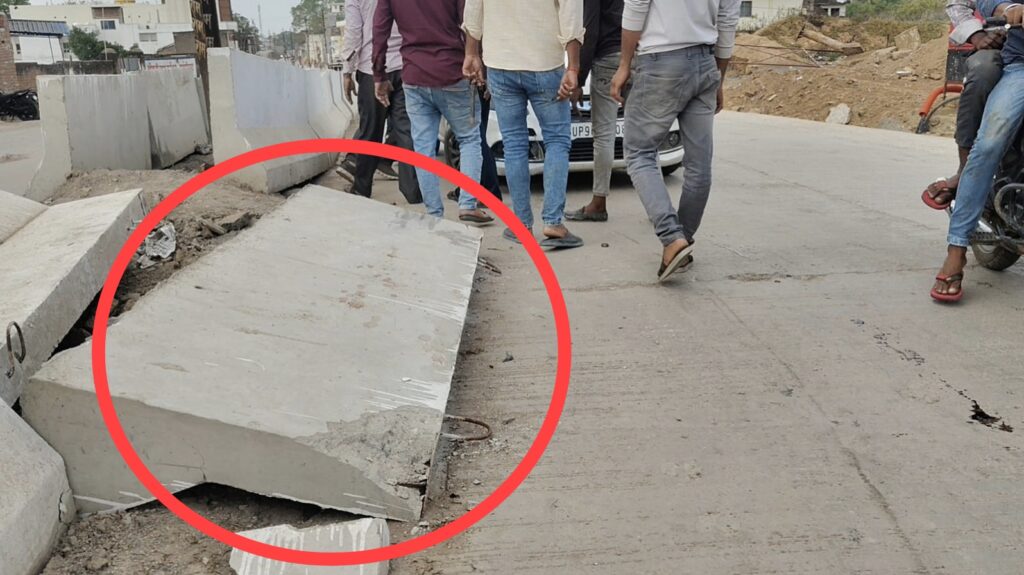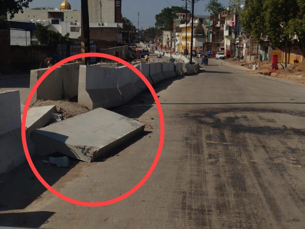सड़क में पड़ा डिवाइडर घटना होने के बाद भी नहीं हटाया गया