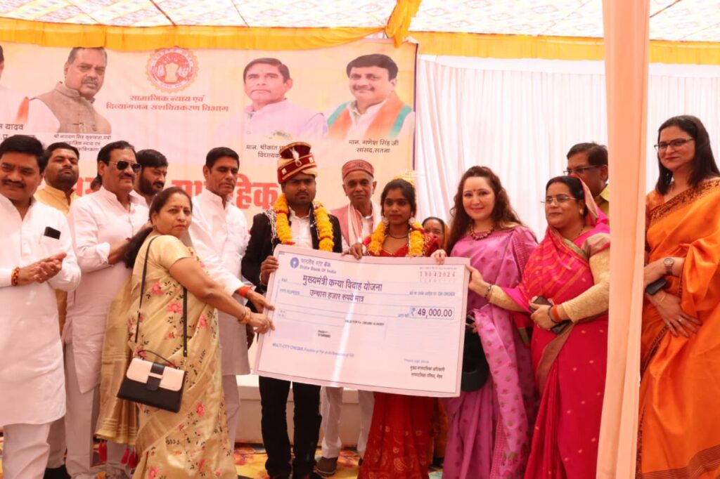 इसी प्रकार मुख्यमंत्री सामूहिक कन्या विवाह सम्मेलन नगर पालिका मैहर के तत्वावधान में देवी जी रोड स्थित पर्यटक सूचना केंद्र में आयोजित कार्यक्रम में शहरी क्षेत्र के 50 जोड़ों का सामूहिक विवाह संपन्न कराया गया। इस अवसर पर भी जनप्रतिनिधियों एवं अधिकारियों ने नव विवाहित जोड़ों को आशीर्वाद प्रदान कर उन्हें शासन की योजनाओं का लाभ दिलाया। दोनों आयोजनों में संबंधित विभागों के अधिकारी-कर्मचारी, जनप्रतिनिधि, नगर के गणमान्य नागरिक एवं ग्राम पंचायतों के सरपंच-सचिव उपस्थित रहे।