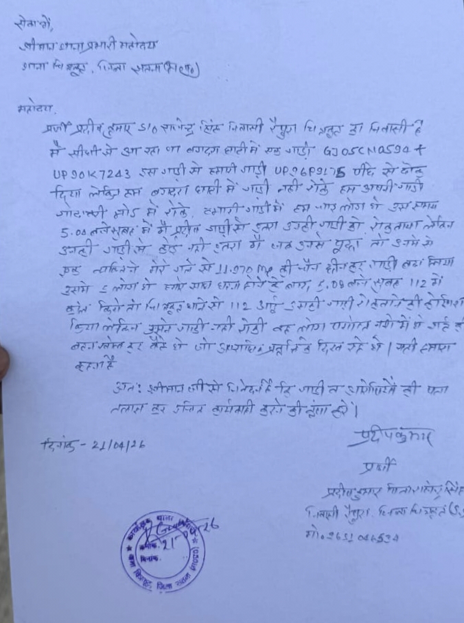 चित्रकूट- फिल्मी स्टाइल में लूट, पुलिस को चकमा देकर भागे कार सवार, सीधी से बारात लौट रहे रैपुरा निवासी प्रदीप की कार को दो गाड़ियों ने ओवरटेक कर एक्सीडेंट किया, कार रुकते ही जालसाजों ने पीड़ित के गले से सोने की चेन झपटी और मौके से फरार हो गए, वारदात में शामिल कारों के नंबर GJ 05 CN 0594और UP 90 K 724 बताए जा रहे हैं, सूचना पर पहुंची 112 की टीम ने घेराबंदी की, लेकिन लुटेरे पुलिस वाहन को ही ओवरटेक कर भाग निकले, यह सनसनीखेज घटना चित्रकूट थाना क्षेत्र के बगदरा घटिया के पास की है, पीड़ित पक्ष ने थाने में लिखित तहरीर दे दी है, बगदरा में हमेशा मौजूद रहने वाली SAF भी नही है मौजूद खाली पड़ी चौकी और हुई वारदात, चित्रकूट में कार के वीडियो भी आया सामने।