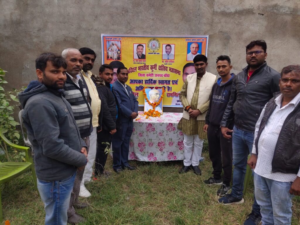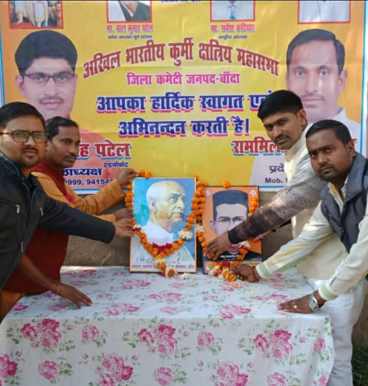 1 min readबाँदा :- आज अखिल भारतीय कुर्मि क्षत्रिय महासभा का 127 वां स्थापना दिवस जिला इकाई द्वारा बाँदा स्थिति कार्यालय में मनाया गया, कार्यक्रम की अध्यक्षता जिला अध्यक्ष दिनेश सिंह पटेल एडवोकेट द्वारा की गई ,इस अवसर पर उपस्थित पदाधिकारिओ ने महासभा के संस्थापक बाबु रामाधीन जी के चित्र पर माल्यार्पण के साथ साथ भारतरत्न सरदार वल्लभ भाई पटेल के चित्र पर भी माल्यार्पण किया गया , कार्यक्रम की अध्यक्षता कर रहे जिला अध्यक्ष दिनेश पटेल ने कहा कि बाबु रामाधीन ने समाज को एकत्र कर आजादी की लडाई लड़ी थी , इस अवसर में अपने संबोधन में प्रदेश सचिव एडवोकेट राममिलन पटेल ने कहा कि हमें बाबु रामाधीन सिंह जी और सरदार वल्लभ भाई पटेल जी के बताए गए रास्ते पर चलते हुए देश और समाज की सेवा करनी चाहिए , वही जिला मीडिया कार्यालय प्रभारी अरुण कुमार पटेल ने कहा कि आज हमारा अन्नदाता सड़को में है और देश की सरकार को उद्योगपति गुमराह कर रहे हैं ,यदि किसानों की जायज मांगे नही मानी गयी ,तो देश उद्योगपतियों के गुलाम हो जाएगा , इस अवसर पर जितेंद्र सिंह, कमलेश ,सुरेश, संतोष चौरसिया,कुलदीप सिंह, अरविंद सिंह, राममूरत पटेल (प्रधान),डॉ श्यामसुंदर, सुधीर कुमार पटेल, ज्ञानबाबू पटेल, सुमित पटेल , धर्मेंद्र सिंह पटेल, अरुण सिंह पटेल सहित दर्जनों लोग उपस्थित रहे ।।
