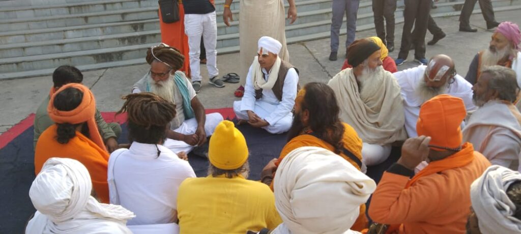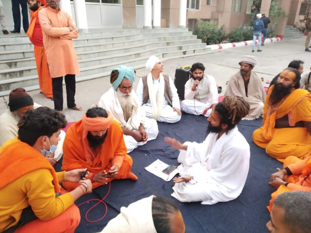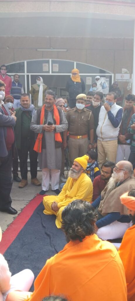 चित्रकूट कलेक्ट्रेट परिसर में धरने पर बैठे संत